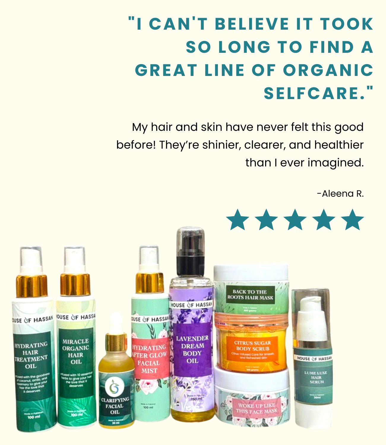 Hydrating Oil and Miracle Oil Duo 200mlTwo bottles of 'House of Hassan's' hair oil products held in front of a mirror.